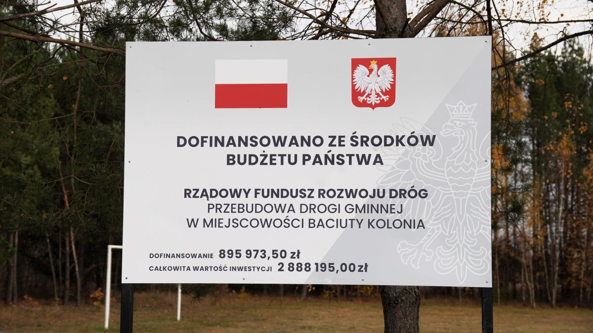 Rządowy Funduszu Rozwoju Dróg zmienia lokalną infrastrukturę. W miniony piątek (3.11) władze Gminy Turośń Kościelna oddały do użytku przebudowany odcinek drogi w miejscowości Baciuty Kolonia. Prace były dofinansowane z budżetu państwa kwotą prawie 900 tys. zł.