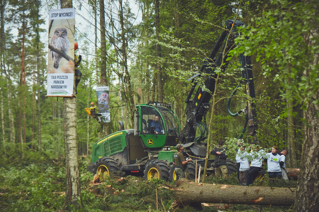 Aktywiści z Greenpeace oraz Dzikiej Polski od ponad tygodnia są obecni w Puszczy Białowieskiej. Najpierw usiłowali powstrzymać ciężki sprzęt do wyrębu lasów, teraz przeszli na zamknięty dla turystów obszar i zamierzają edukować ludzi z wiedzy o ostatnim pierwotnym lesie w Europie.