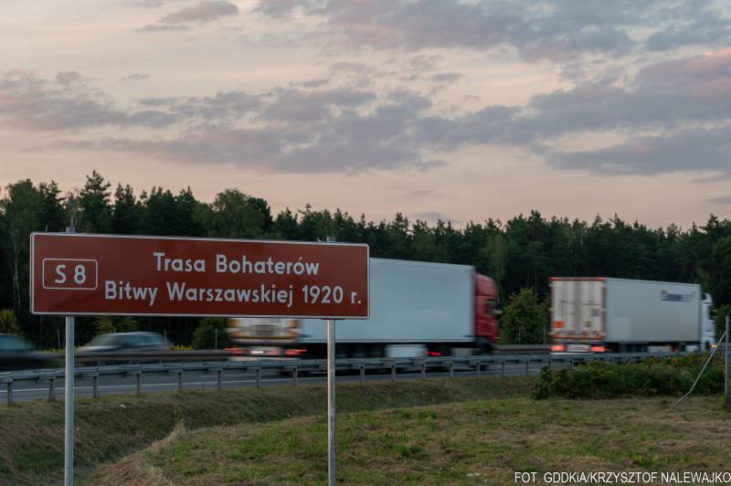 Kierowcy, którzy dziś po raz pierwszy od minionej soboty będą jechać krajową ósemką z Białegostoku do Warszawy, zobaczą nowe tablice ustawione przy drodze. Odróżniają się zasadniczo od innych tablic, kolorem, rozmiarem i miejscem ustawienia. Z okazji 100-lecia Bitwy Warszawskiej krajowa ósemka otrzymała swoją nazwę, widniejącą na tych tablicach.