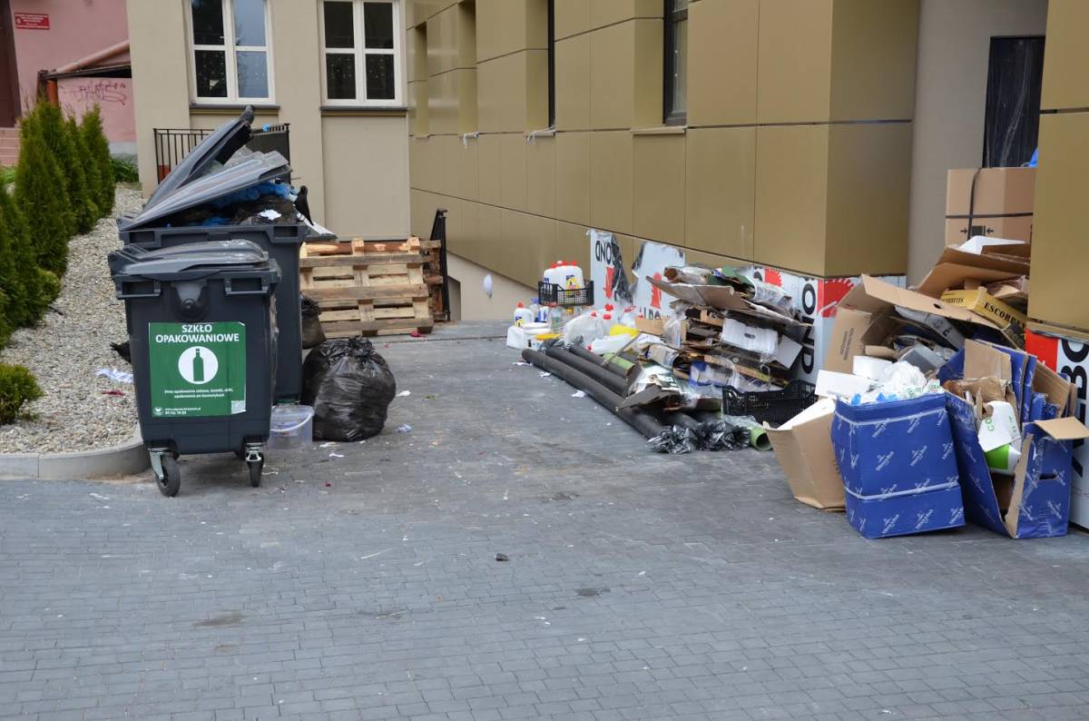 Praktycznie przez tydzień w niektórych miejscach nie udało się zauważyć żadnej śmieciarki, która zabrałaby wypełnione po brzegi kosze. W niektórych miejscach zawartość kubłów walała się obok i nieco dalej od śmietnika. Powodem był brak miejsca w koszu właściwym, więc ludzie zostawiali worki i reklamówki ze śmieciami pod koszami lub gdziekolwiek, gdzie dało się zostawić odpady.