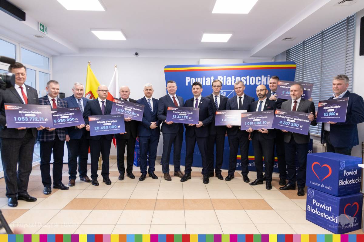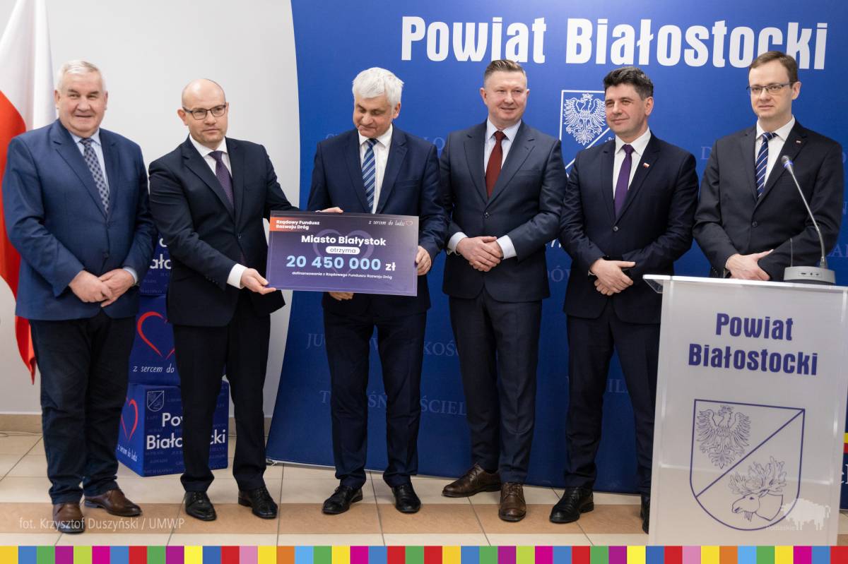 Prawie 50 milionów złotych trafi do samorządów z aglomeracji białostockiej. Promesy na budowę i remonty dróg odebrali wszyscy samorządowcy, oprócz prezydenta Białegostoku, mimo że to właśnie Miasto Białystok jest największym beneficjentem dotacji. Bo jak nie dostaje pieniędzy z dotacji to źle i jak dostaje pieniądze też jest źle.