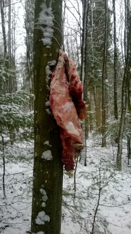 Zdjęcia Naszpikował mięso haczykami wędkarskimi i wywiesił na drzewie jako przynętę - fotorelacja