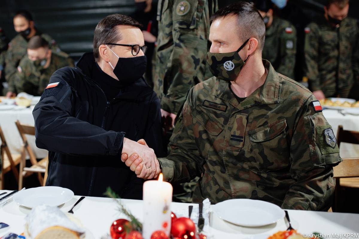 Wigilia w tym roku dla osób służących na naszej wschodniej granicy jest szczególna – poświęcona służbie dla kraju i z daleka od bliskich. Szef polskiego rządu podczas spotkania z żołnierzami i funkcjonariuszami złożył życzenia spokojnej i cichej wigilijnej nocy oraz podziękował za zaangażowanie w obronę bezpieczeństwa nie tylko terytorium Rzeczypospolitej Polskiej, ale całej Unii Europejskiej.