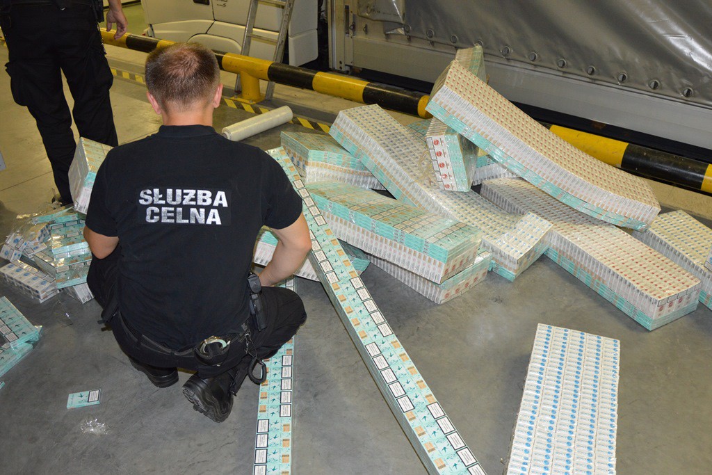 07.2015. Kuźnica - 10 tys. paczek papierosów w podwójnej ściance naczepy ti