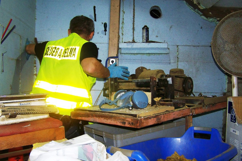 08.2015. Nowinka - likwidacja nielegalnej przetwórni tytoniu