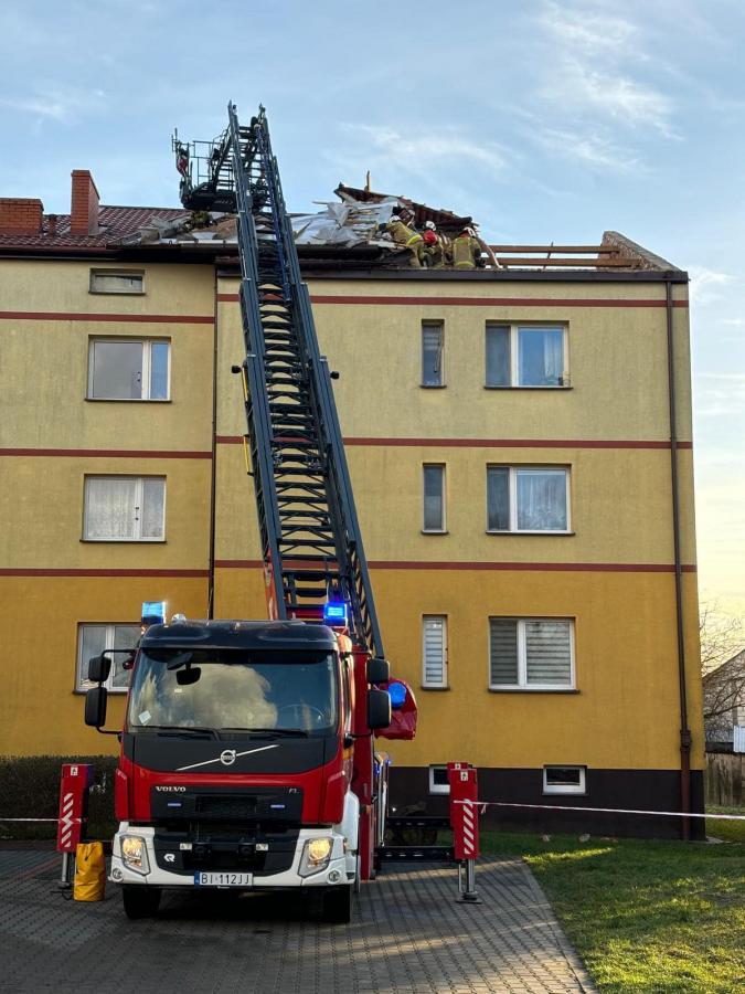 Galeria zdjęć przedstawia akcje służb ratunkowych, które interweniowały po silnych wiatrach w powiatach: wysokomazowieckim, siemiatyckim oraz sokólskim. Strażacy usuwają drzewa z dróg, zabezpieczają dachy i naprawiają zerwane linie energetyczne. Mimo dużych zniszczeń, szczęśliwie nikt nie odniósł obrażeń. Na zdjęciach widać aktywność strażaków oraz służb zaangażowanych w przywracanie normalności po nawałnicach.